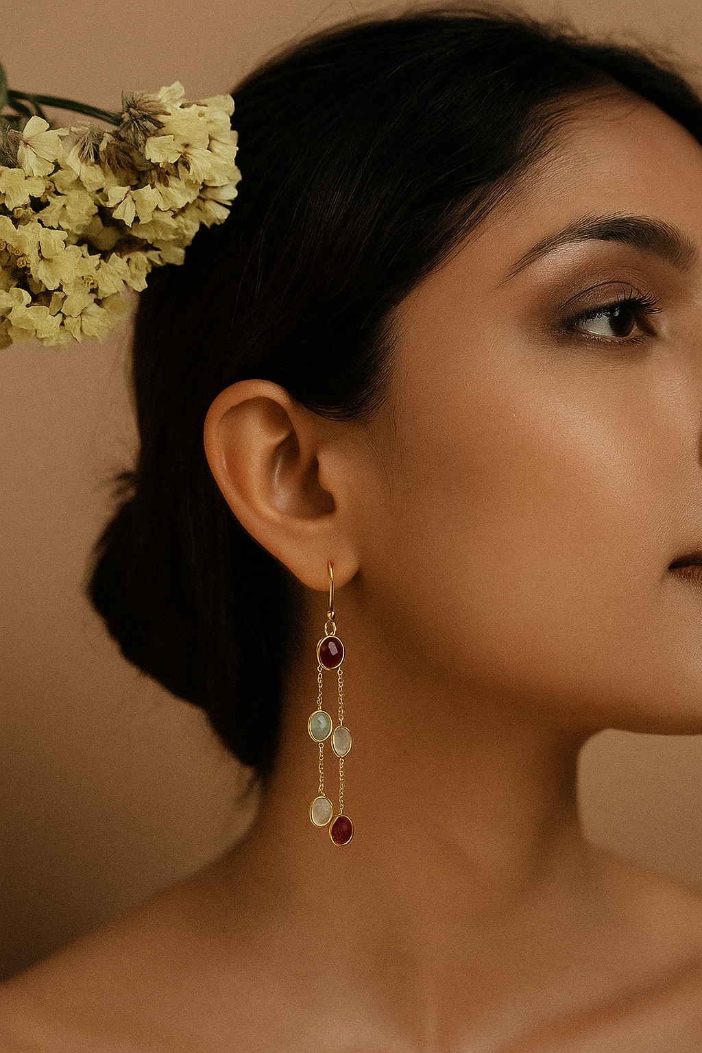 Base Material: 92.5 Sterling Silver Coating: Gold Plated Stone: Ruby Onyx, Aqua Chalcedony, MoonStone
