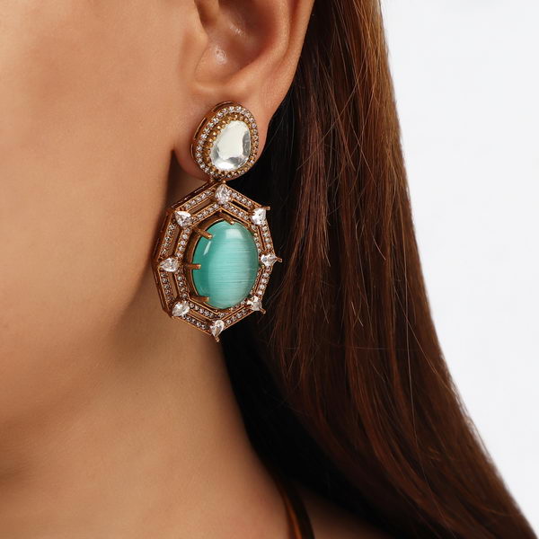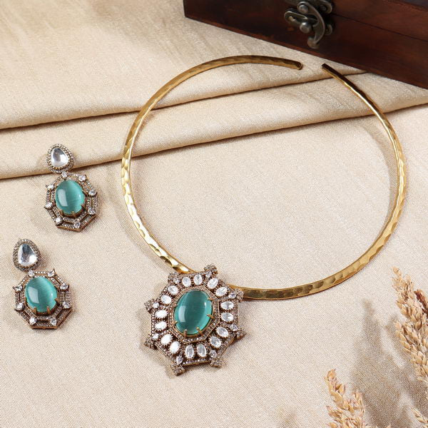 Material Used: Faux Polki, Green Onyx. The Set is Gold Plated with Ecoating on top.