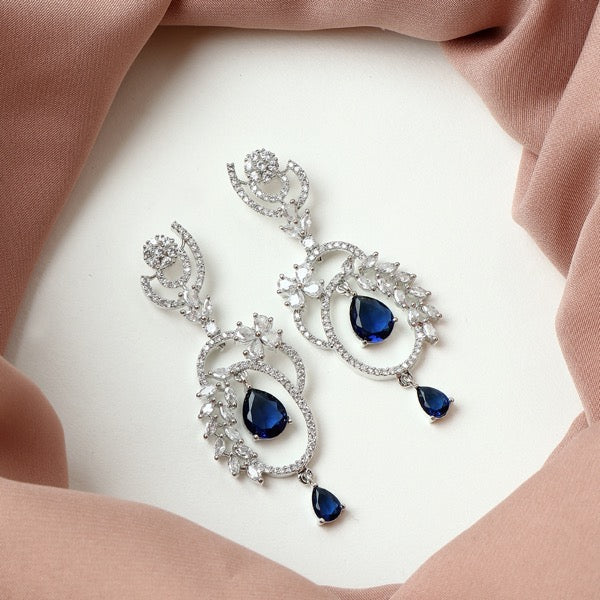 Base Material: Silver Alloy with American Diamonds and Blue Stones. Coating: Rhodium Plated
