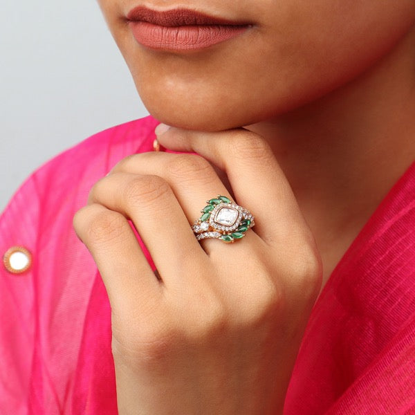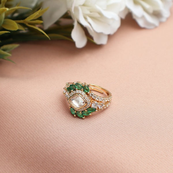 Amna Polki Ring in Green