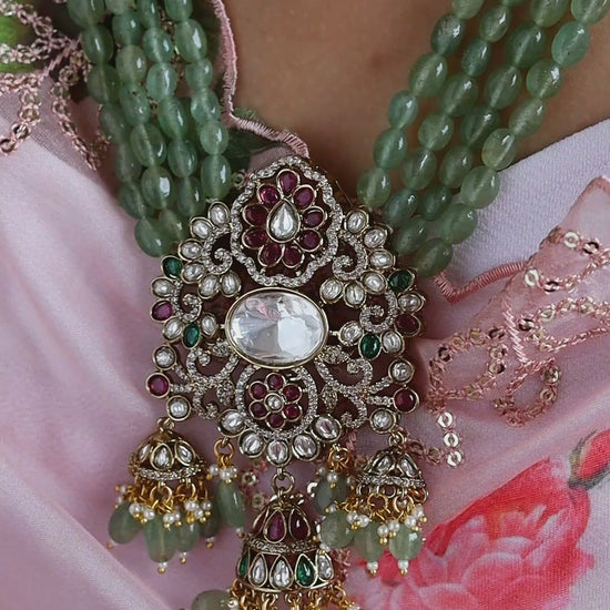 Material Used: Vellore Polki, Ruby and Green Onyx. The Set is Gold Plated with Ecoating on top.