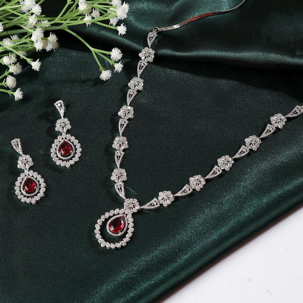 Material Used: American Diamonds with Ruby Glass Stone and Rhodium Plating.