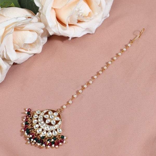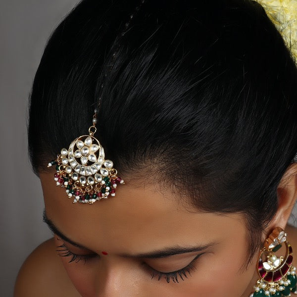 Material Used: Ahmedabadi Kundan, Fresh Water Pearls, The MaangTikka is Gold Plated with Ecoating on top.