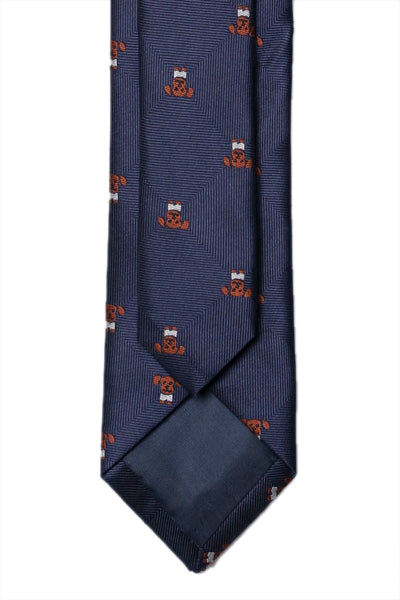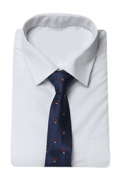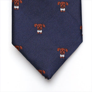 A tie to compliment your sophistication and match your glamorous style. This piece is set in a dark blue base with cute little puppy pattern over it and a sense of grandeur.