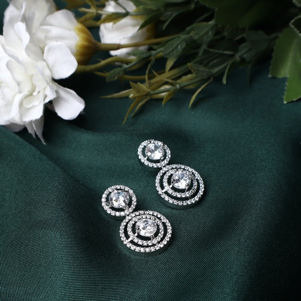Base Material: Silver Alloy with American Diamonds. Coating: Rhodium Plated