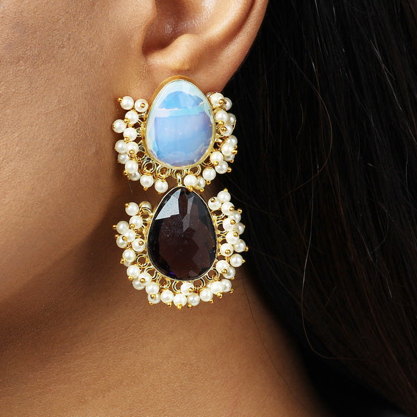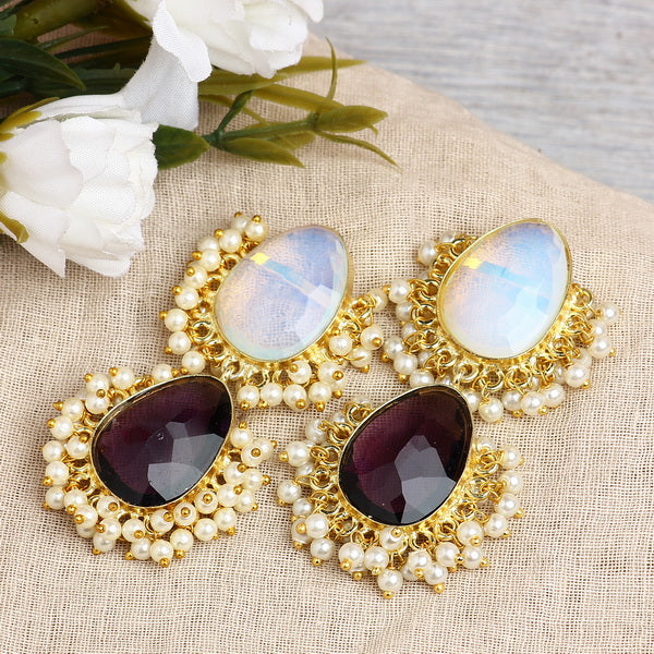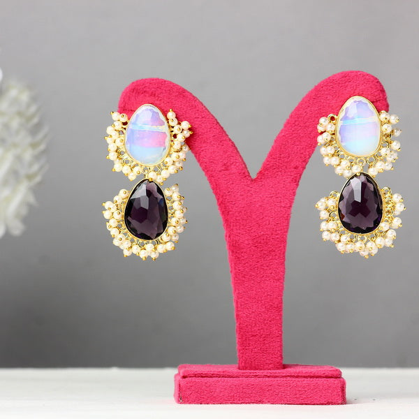 Base Material: Silver Alloy (Nickel and Lead Free) Coating: Gold Plated Stone: White and Purple Onyx