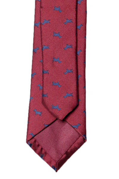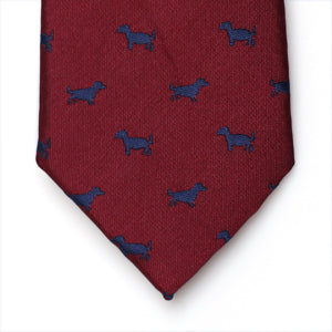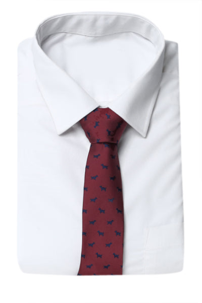 A tie to compliment your sophistication and match your glamorous style. This piece is set in a marron base with cute little puppy pattern over it.