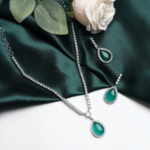 Material Used: American Diamonds with Emerald Green Glass Stone and Rhodium Plating.