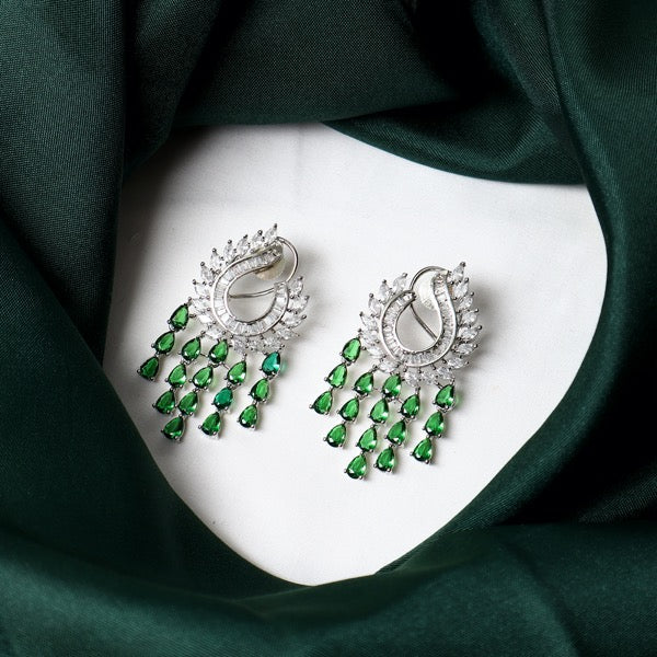 Base Material: Silver Alloy with American Diamonds and Green Stones. Coating: Rhodium Plated