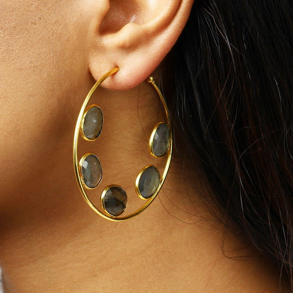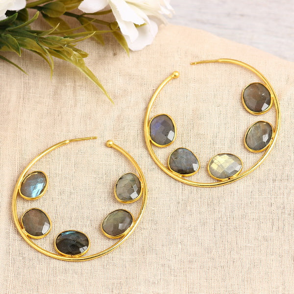 Base Material: Silver Alloy (Nickel and Lead Free) Coating: Gold Plated Stone: Labrodorite