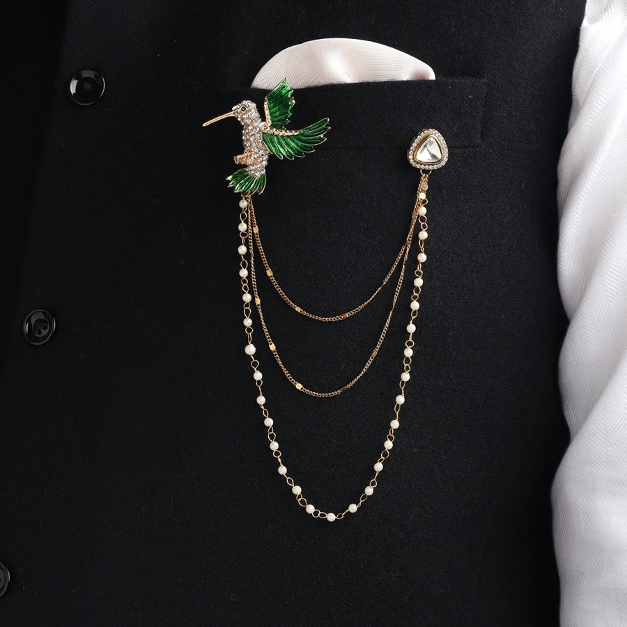 Material: Brass, MultiColour HummingBird with RhineStones, Polki Stud, Gold Plated Chain with Pearls