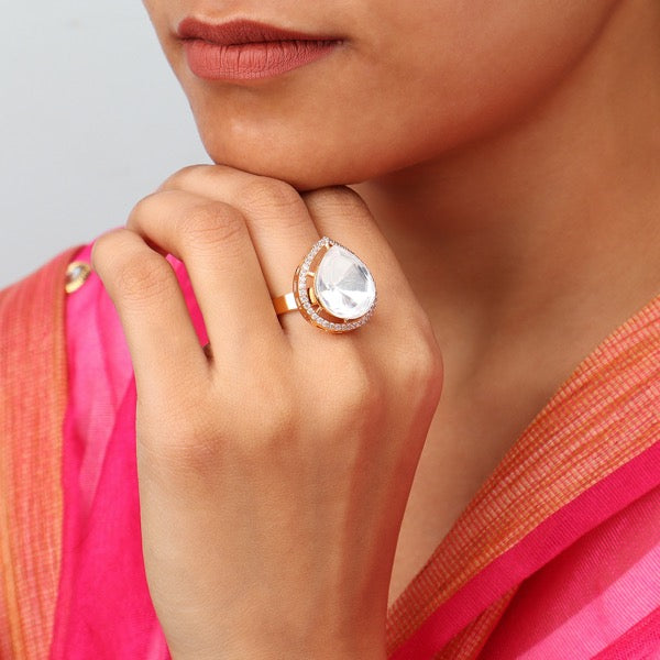 Material Used: Vellore Polki. The Ring is Gold Plated with Ecoating on top.