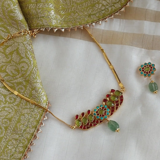 Material Used: Green, Yellow, Turquoise and Ruby Onyx. The Set is Gold Plated with Ecoating on top.