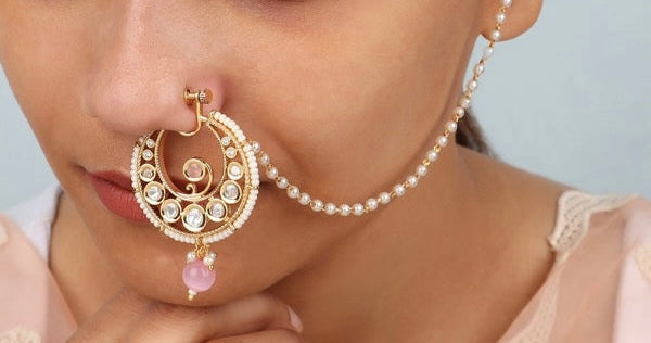 Material Used: Polki, Pearls, Pink Onyx. The Nath is Gold Plated with Ecoating on top.