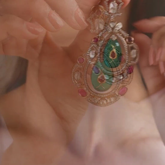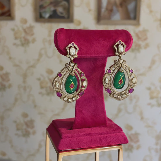 Material Used: Ruby and Green Onyx Stones, Vellore Polki, American Diamonds. The Earring is Gold Plated with Ecoating on top.
