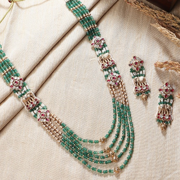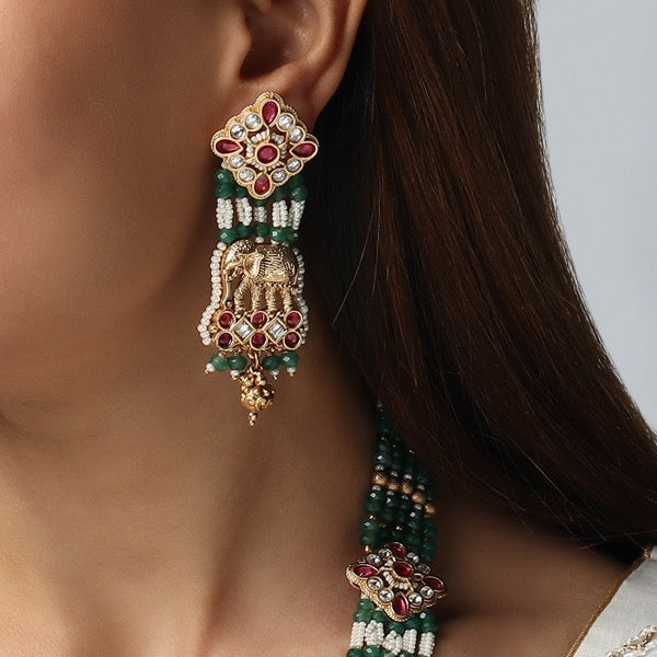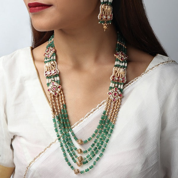Material Used: Emerald and Ruby Onyx Stones, Fresh Water Pearls. The Set is Gold Plated with Ecoating on top.