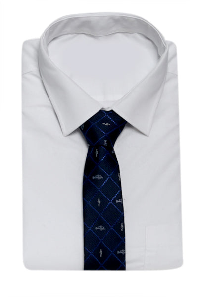 A tie to compliment your sophistication and match your glamorous style. This piece is set in a blue base with white colored modern pattern.