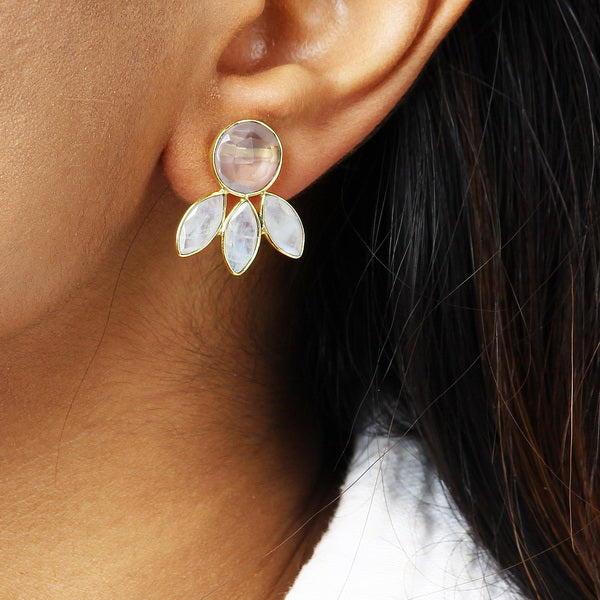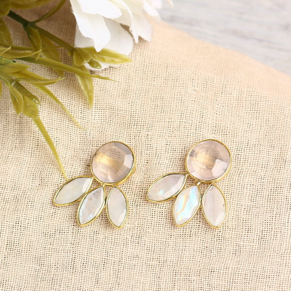 Base Material: Silver Alloy (Nickel and Lead Free) Coating: Gold Plated Stone: Rose Quartz and Rainbow Moonstone