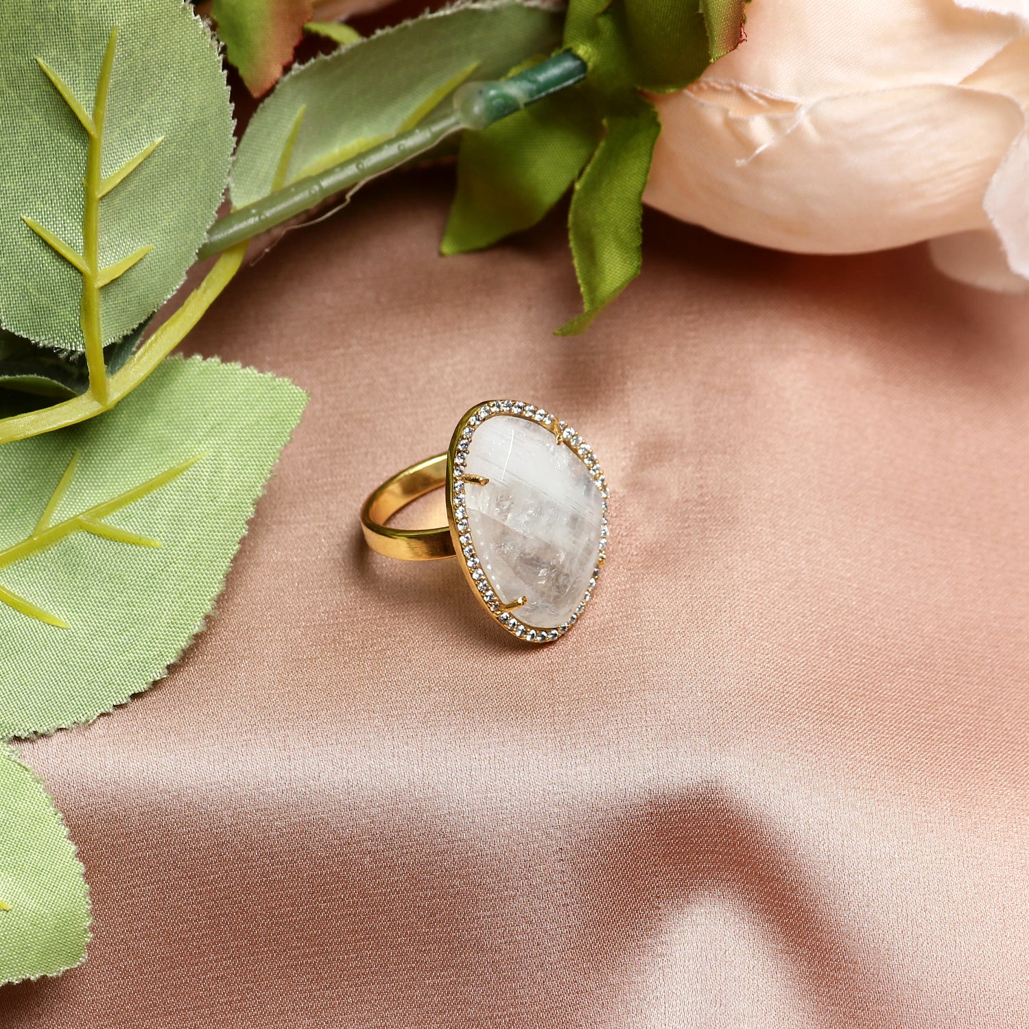 Material Used: MoonStone, American Diamond. The Ring is Gold Plated with Ecoating on top.