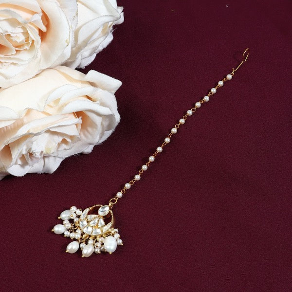 Material Used: Ahmedabadi Kundan, Fresh Water Pearls, The MaangTikka is Gold Plated with Ecoating on top.