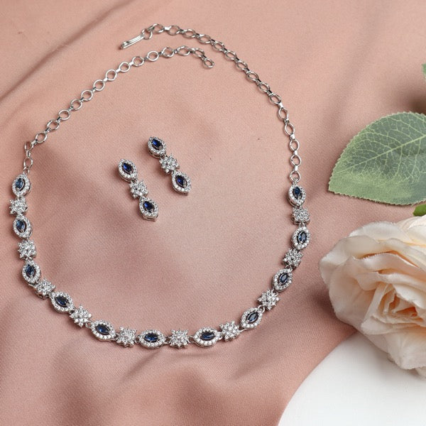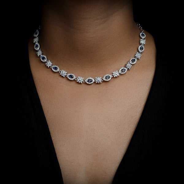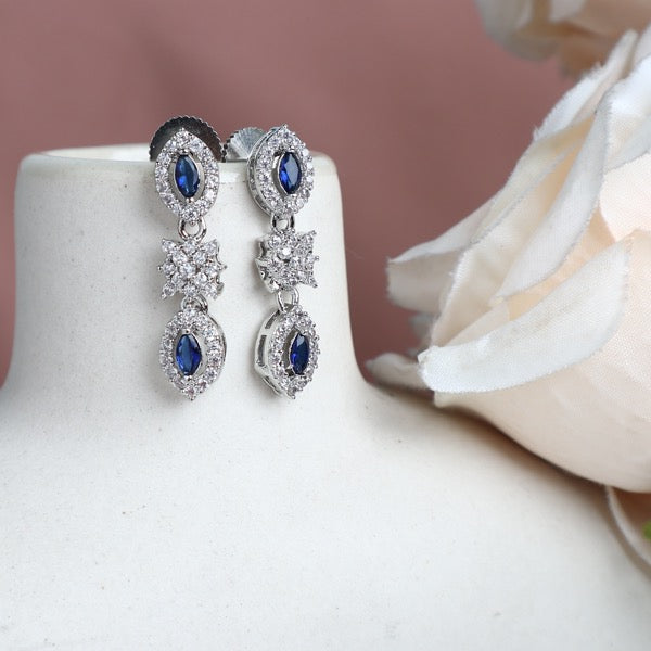 Material Used: American Diamonds with Sapphire Blue Glass Stone and Rhodium Plating.
