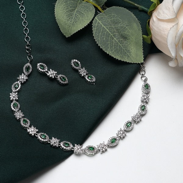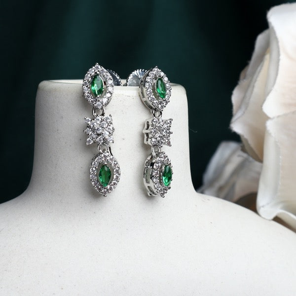 Material Used: American Diamonds with Emerald Green Glass Stone and Rhodium Plating.