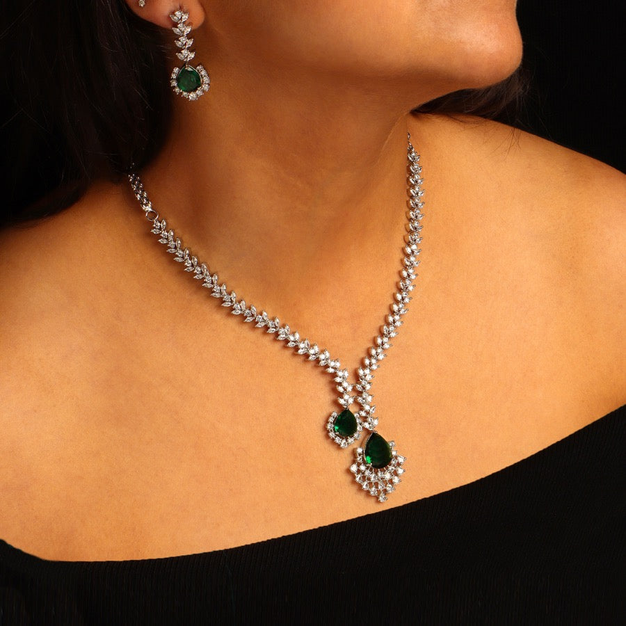 Material Used: American Diamonds with Sapphire Blue Glass Stone and Rhodium Plating.