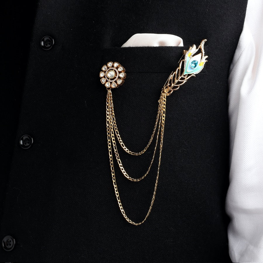 Material: Brass, MultiColour Feather, Polki Round Stud, Gold Plated Chain