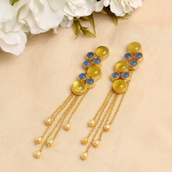 Base Material: Silver Alloy (Nickel and Lead Free) Coating: Gold Plated Stone: Yellow and Blue Onyx