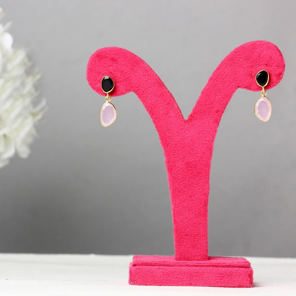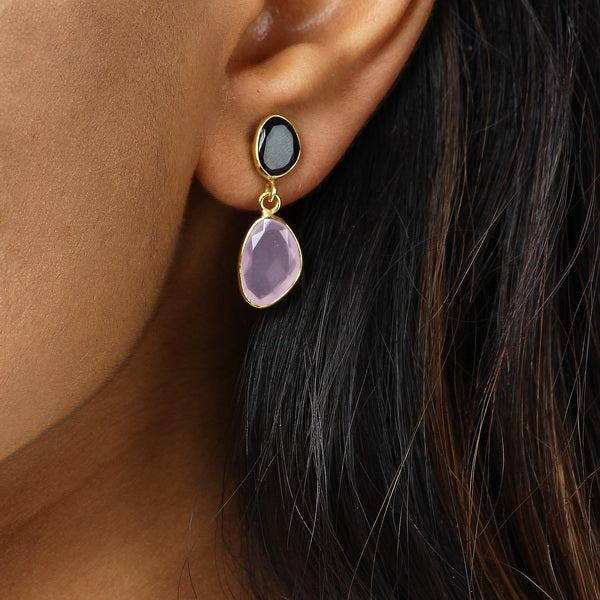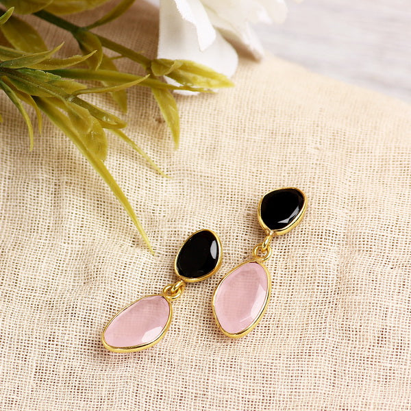 Base Material: Silver Alloy (Nickel and Lead Free) Coating: Gold Plated Stone: Black Onyx and Pink Chalcedony