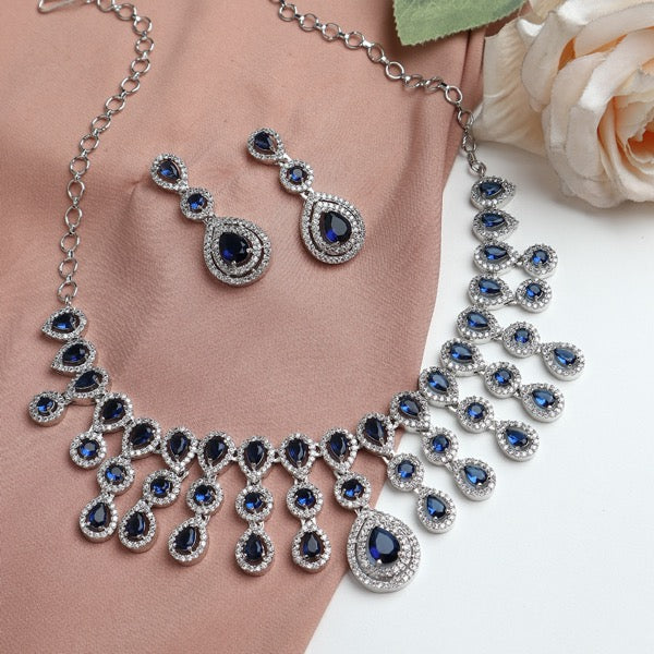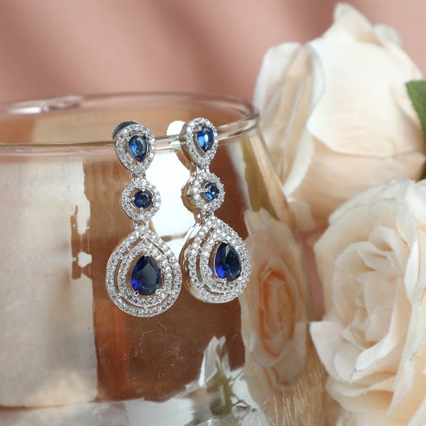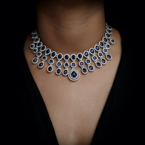 Material Used: American Diamonds with Sapphire Blue Glass Stone and Rhodium Plating.