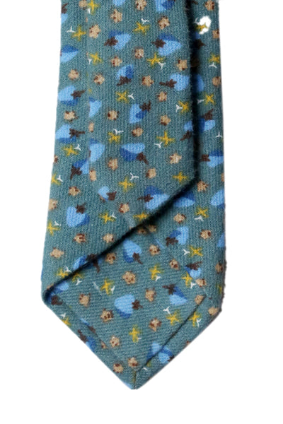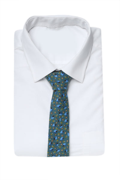 A tie to compliment your sophistication and match your glamorous style. This piece is set in a dull green base with richly colored modern pattern and a sense of grandeur.