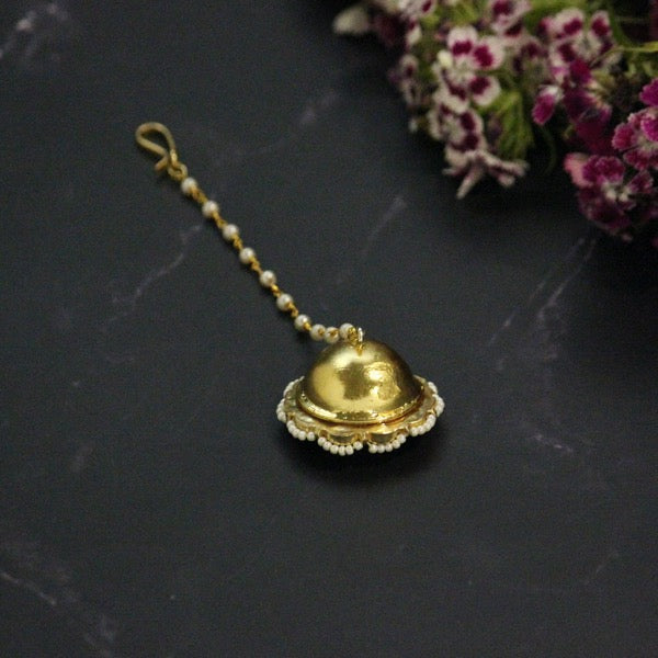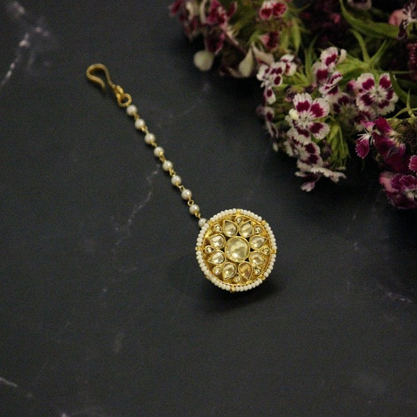 Material Used: Vellore Polki , Fresh Water Pearls. The Maang Tikka is Gold Plated with E-coating on top.