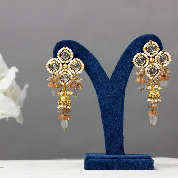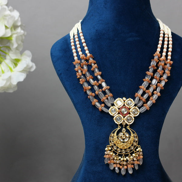 Material Used: Grey Orange Onyx Stones, Vellore Polki, Fresh Water Pearls. The Set is Gold Plated with Ecoating on top.