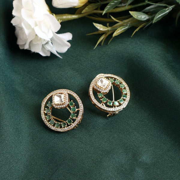 Material Used: Vellore Polki, Green Glass Stone, American Diamonds. The Earring is Gold Plated with Ecoating on top.