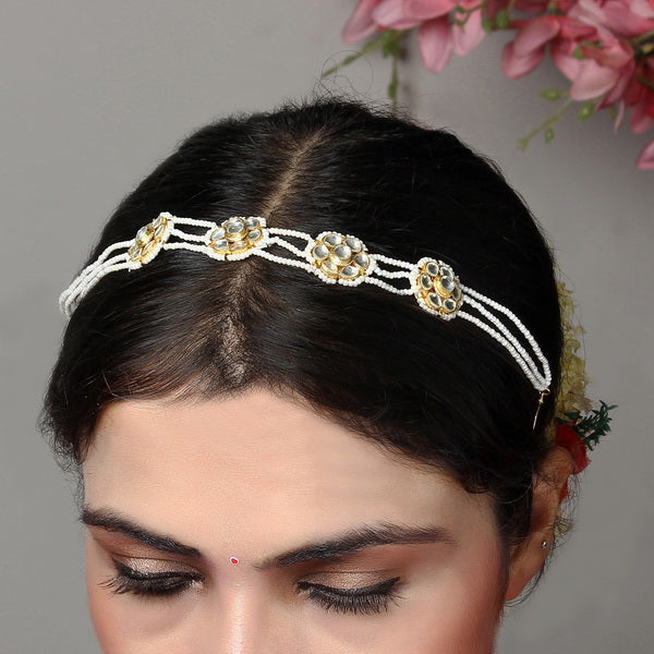 Material Used: Vellore Polki, Fresh Water Pearls. The SheeshPhool is Gold Plated with Ecoating on top.
