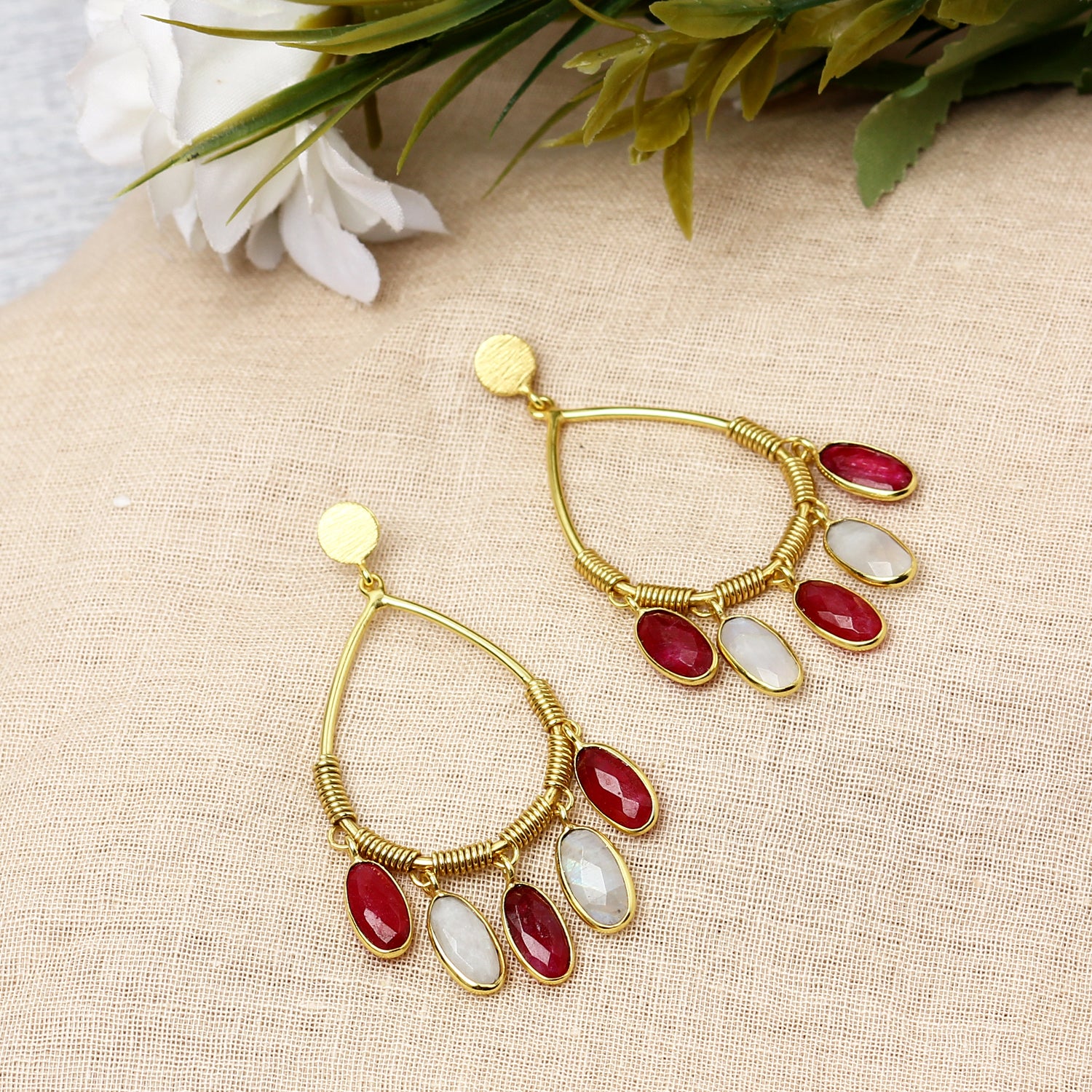 Ruby and Moon in Tear Drop Hoops