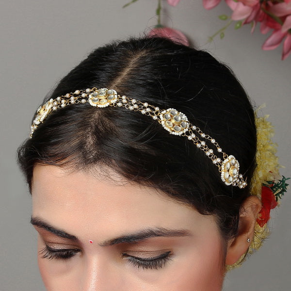 Material Used: Vellore Polki, Fresh Water Pearls. The SheeshPhool is Gold Plated with Ecoating on top.