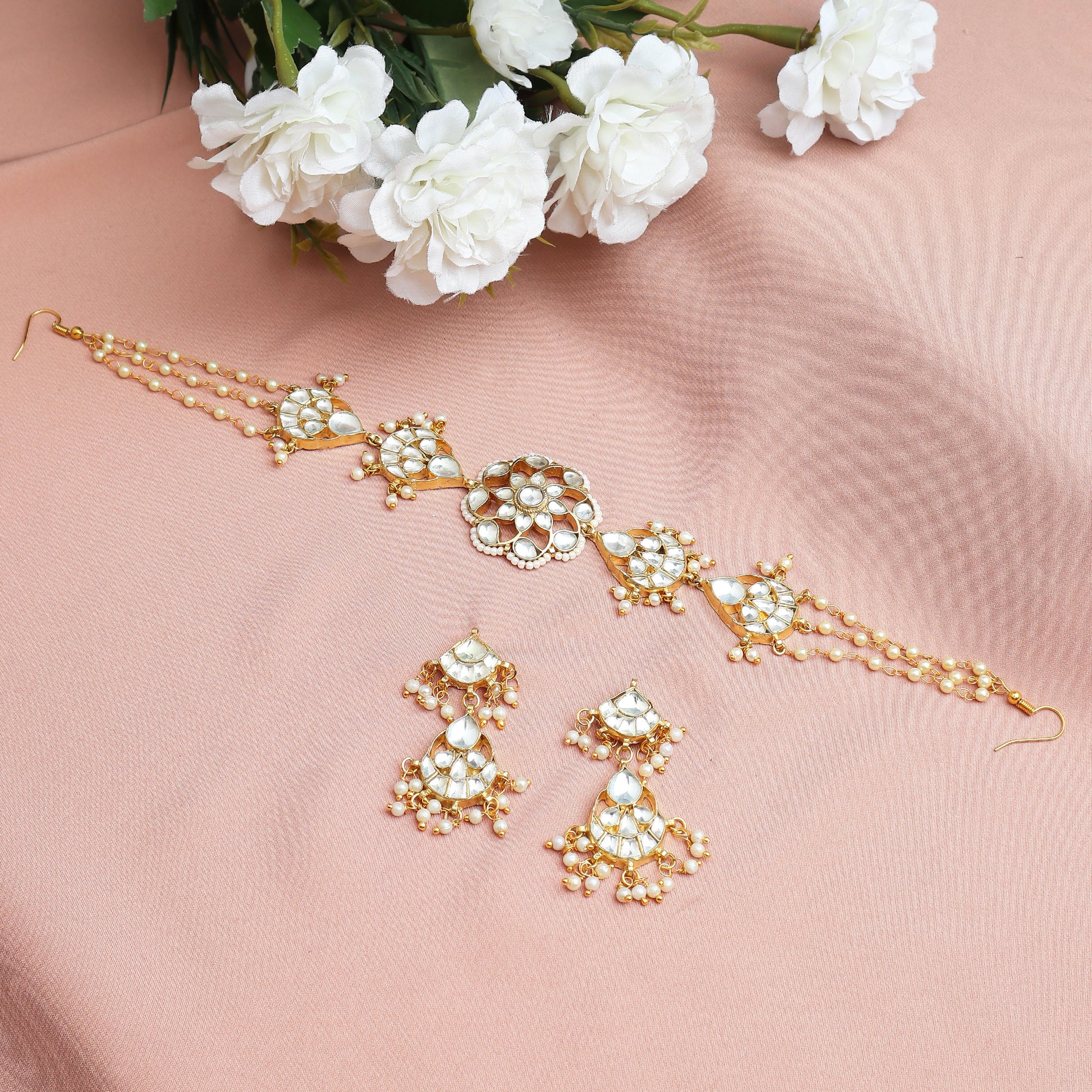 Material Used: Pachi Ahmedabadi Kundan, Fresh Water Pearls. The Set is Gold Plated with Ecoating on top.
