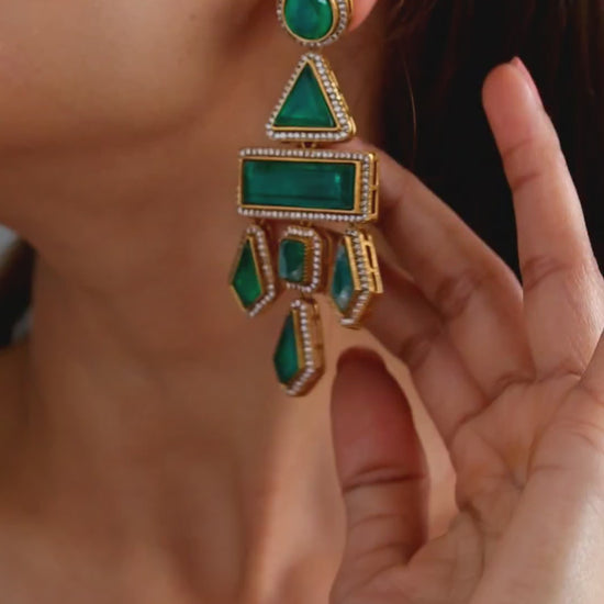 Material Used: Green Doublet Stones, American Diamonds. The Earring is Gold Plated with Ecoating on top.