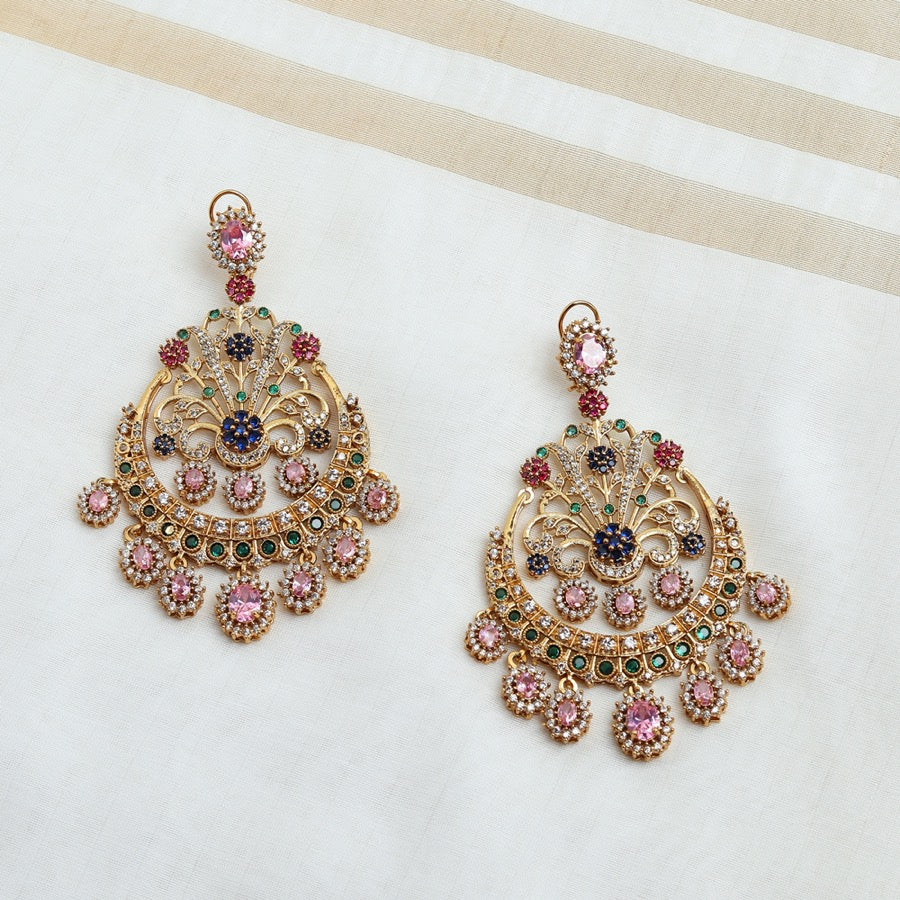 Material Used: MultiColour Onyx Stones, American Diamonds. The Earring is Gold Plated with Ecoating on top.