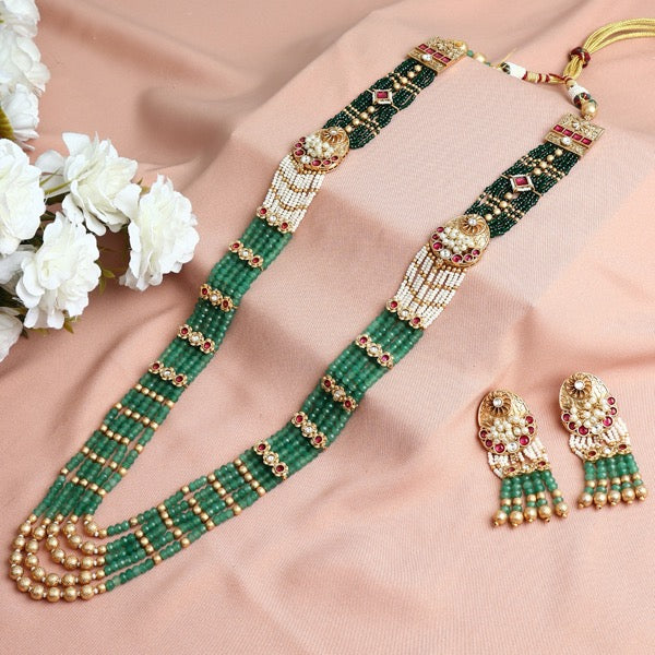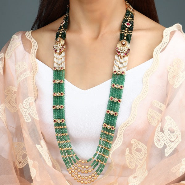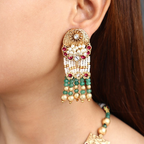 Material Used: Ruby and Emerald Onyx Stones, Fresh Water Pearls. The Set is Gold Plated with Ecoating on top.