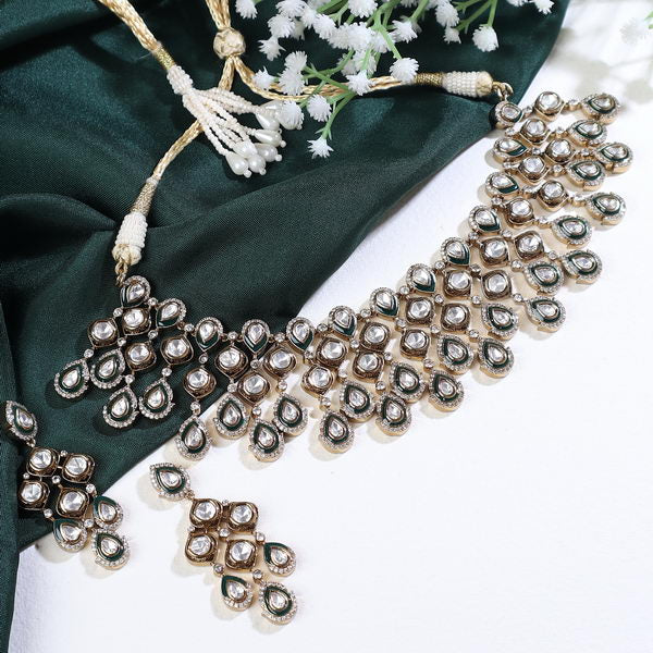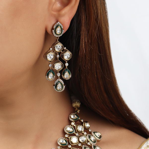 Material Used: Silver Foil Polki, Green Enamelling. The Set is Gold Plated with Ecoating on top.