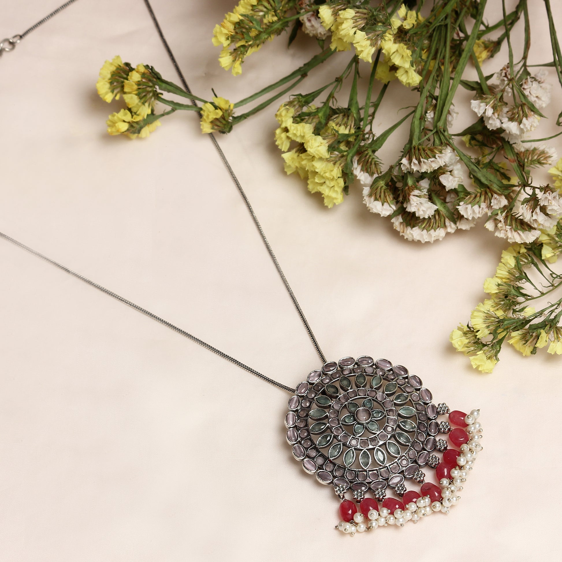 The total length of the pendant/mala will be about 34 inches. It is adjustable upto 5 inches. The length can be altered on special request. Kindly whatsapp at 9821577909 for any such request.