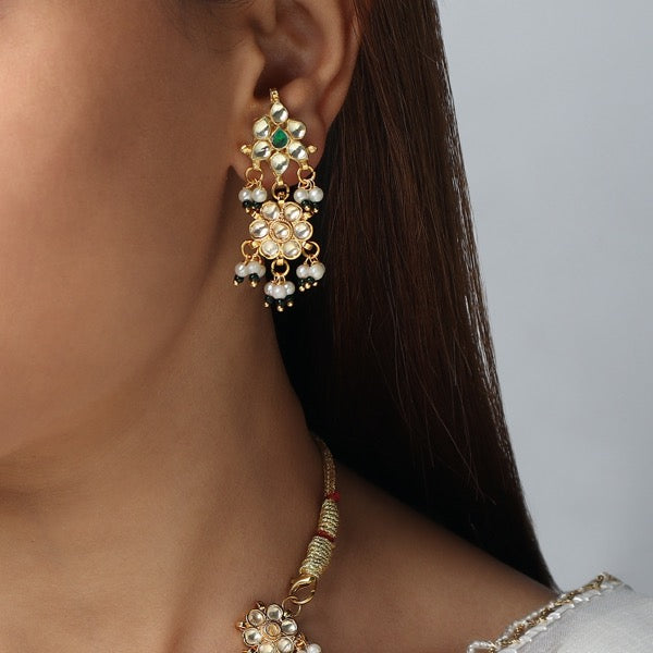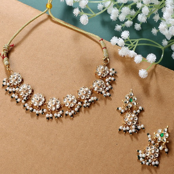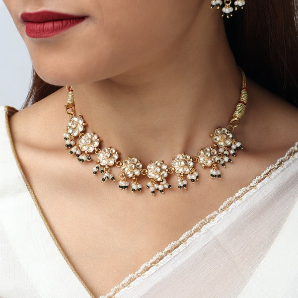 Material Used: Pachi Ahmedabadi Kundan, Fresh Water Pearls. The Set is Gold Plated with Ecoating on top. This choker comes without earrings.