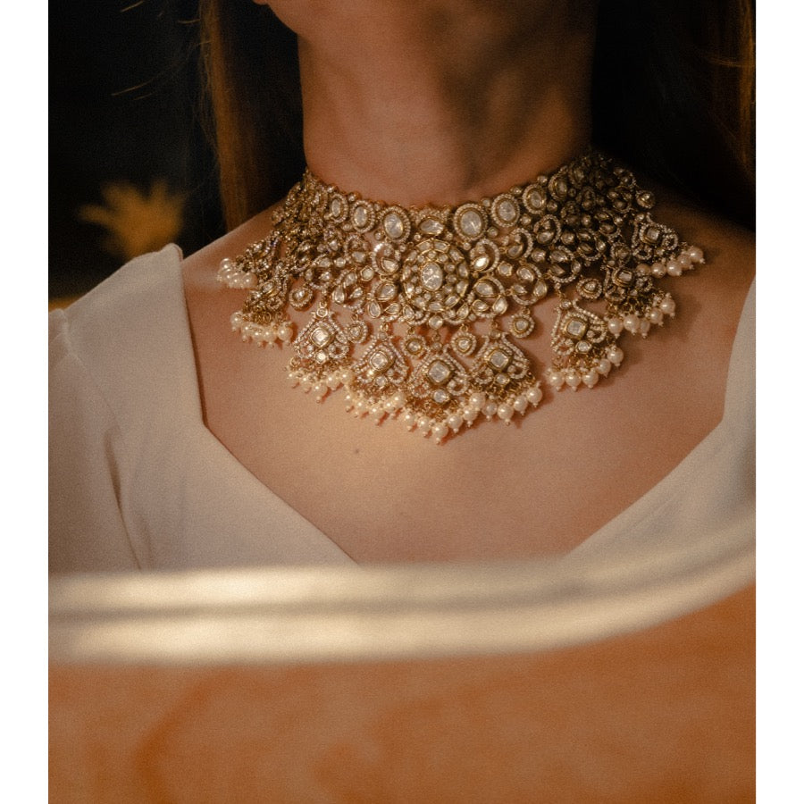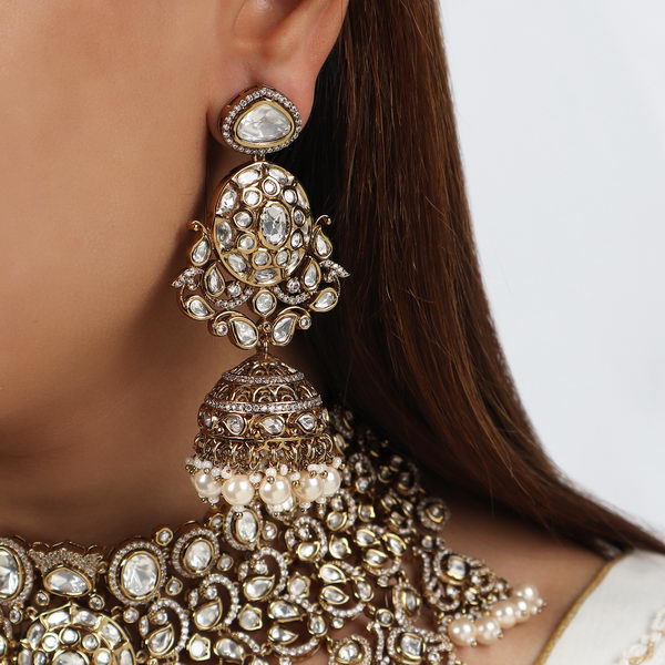 Material Used: Silver Foil Polki, Pearls. The Set is Gold Plated with Ecoating on top.