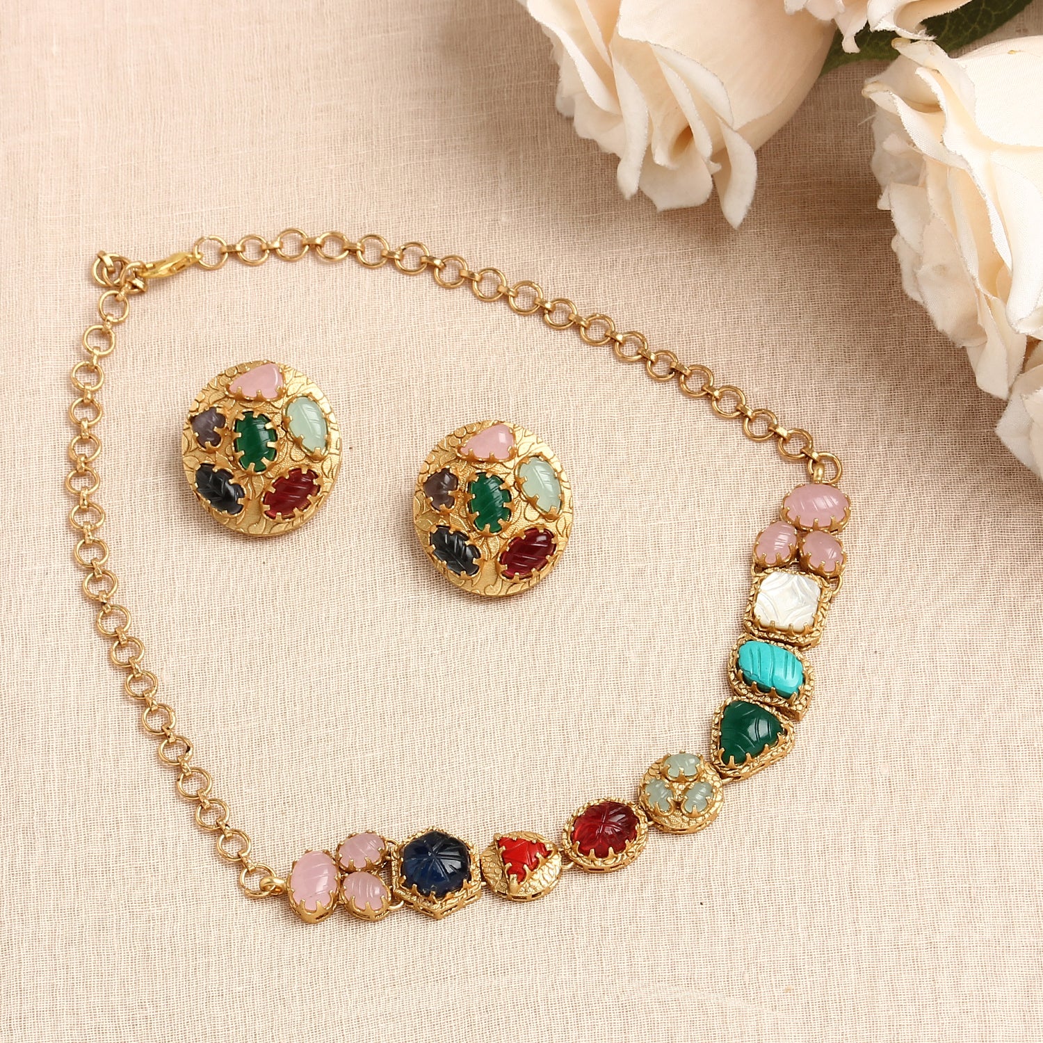 Material Used: Multi Colour Onyx Stones. The Set is Gold Plated with Ecoating on top.