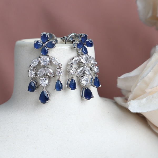 Material Used: American Diamonds with Sapphire Blue Glass Stone and Rhodium Plating.