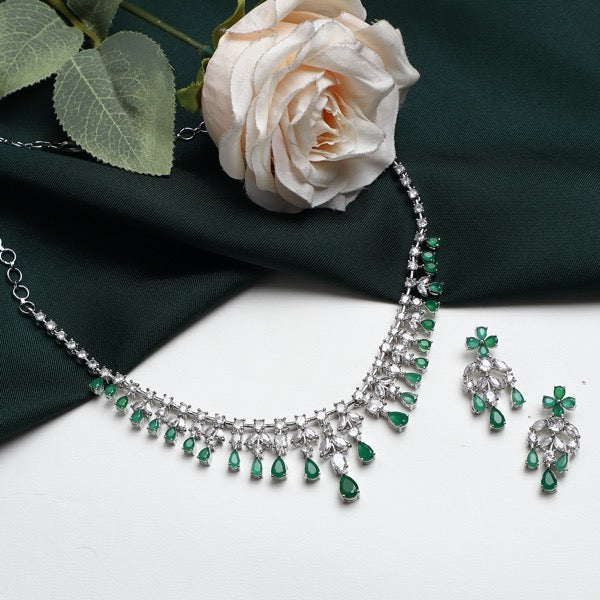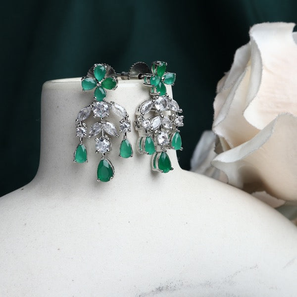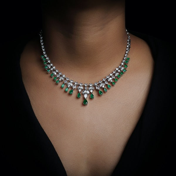 Material Used: American Diamonds with Emerald Green Glass Stone and Rhodium Plating.