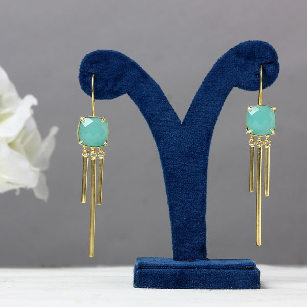 Base Material: Silver Alloy (Nickel and Lead Free) Coating: Gold Plated Stone: Green Chalcedony